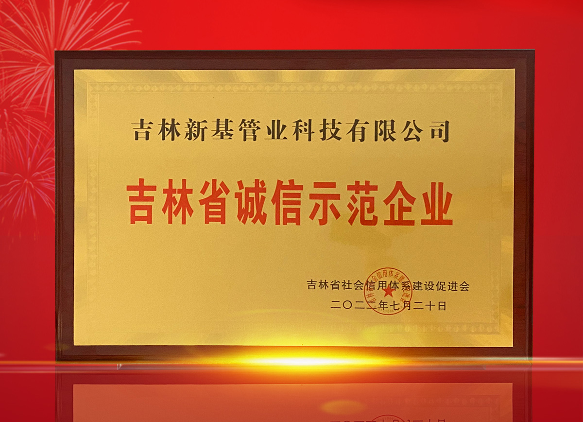 喜報(bào)丨新基管業(yè)再次榮獲"吉林省誠(chéng)信示范企業(yè)"榮譽(yù)稱(chēng)號(hào)